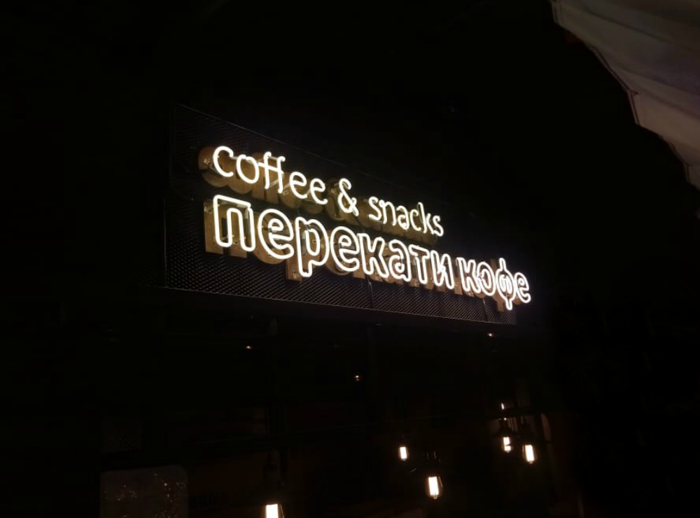Неоновая вывеска для кофейни "Перекати кофе" (неоновые трубки