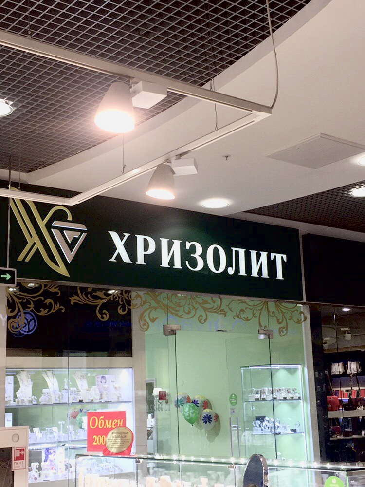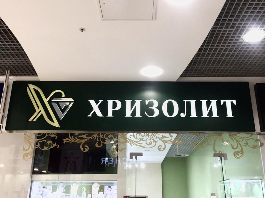 Вывеска для ювелирного салона «Хризолит» в МФЦ «Сан Сити»